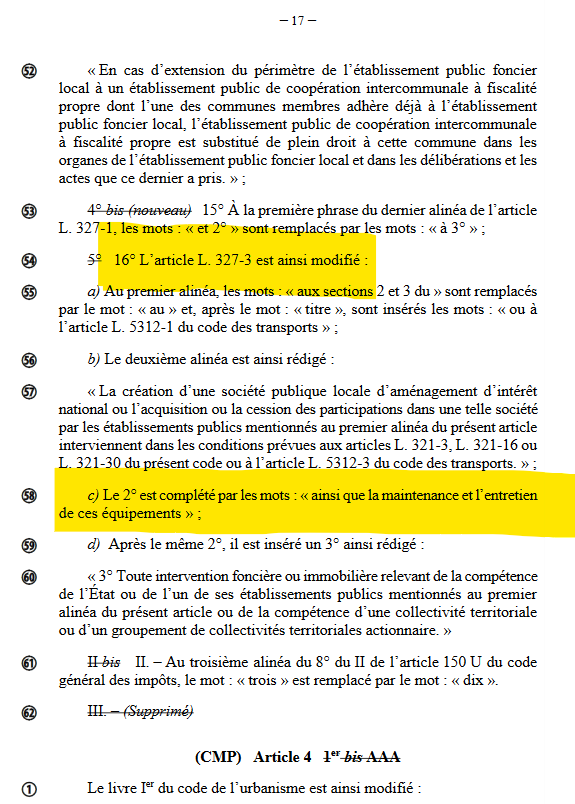 S’il est adopté en l’état, il va fragiliser les finances publiques et généraliser de nouveaux montages, très coûteux à long terme, pour les collectivités. Il prévoit que des Sociétés Publiques Locales d’Aménagement à Intérêt National puissent tout simplement gérer du patrimoine sur plusieurs années. Nous rappelons qu’un Société Publique Locale d’Aménagement n’a que très peu de personnel, et son principal enjeu est donc de passer des marchés de travaux, il en sera de même pour l’entretien en la maintenance.